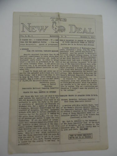 Title (ebay affiliate link): 1932 THE NEW DEAL Roosevelt Garner DC Young Democrats Club Campaign Newsletter