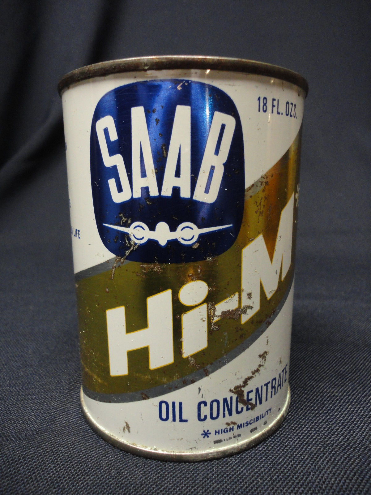 Title (ebay affiliate link): Vntg 1966 SAAB HI-M 2-CYCLE METAL OIL CAN w/ AIRPLANE LOGO 18 oz Full & Unopened