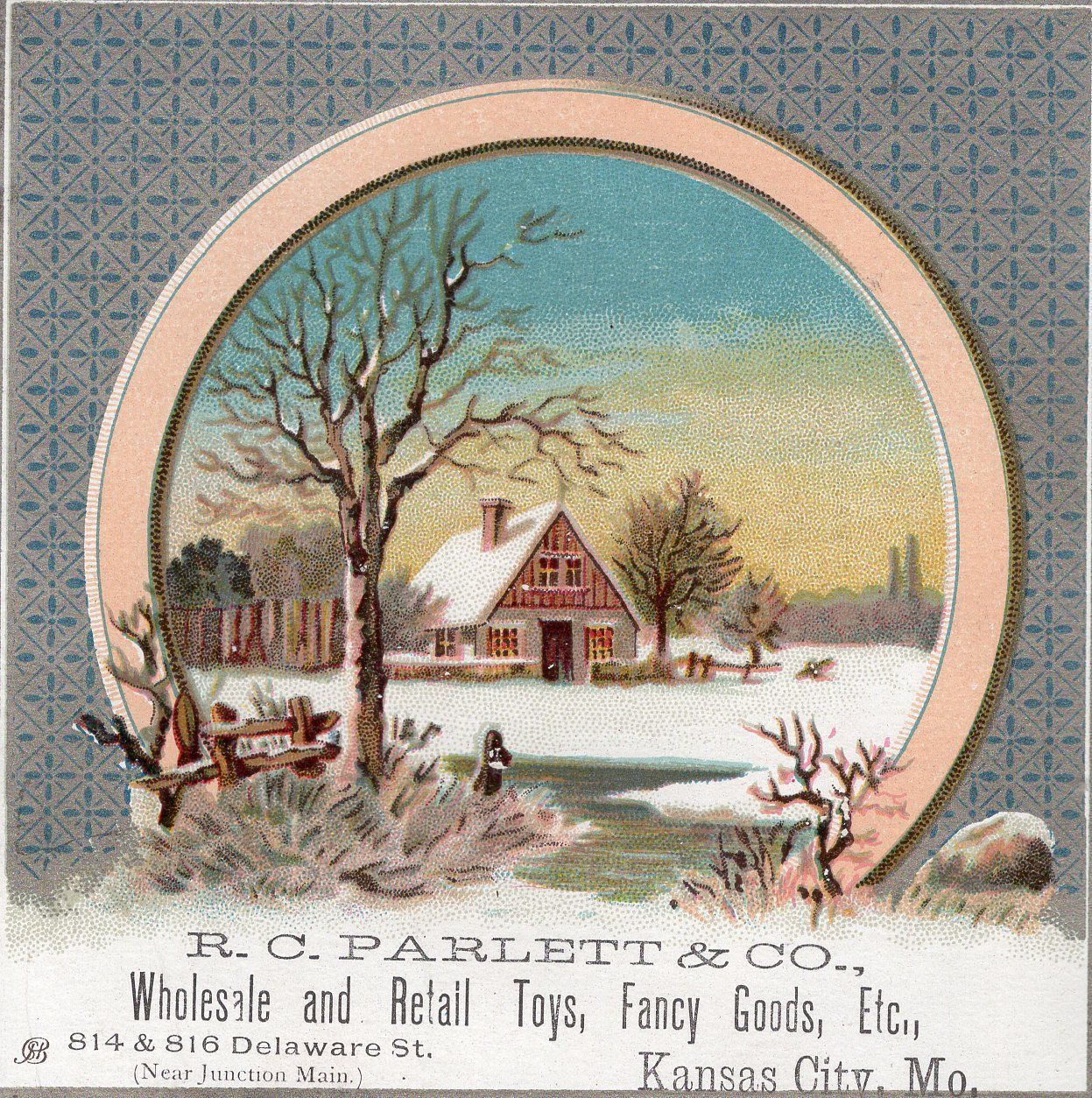Title (ebay affiliate link): 1800''S- VICTORIAN -R.C PARLETT & CO - KANSAS CITY MO - TRADE CARD - SCRAPBOOK