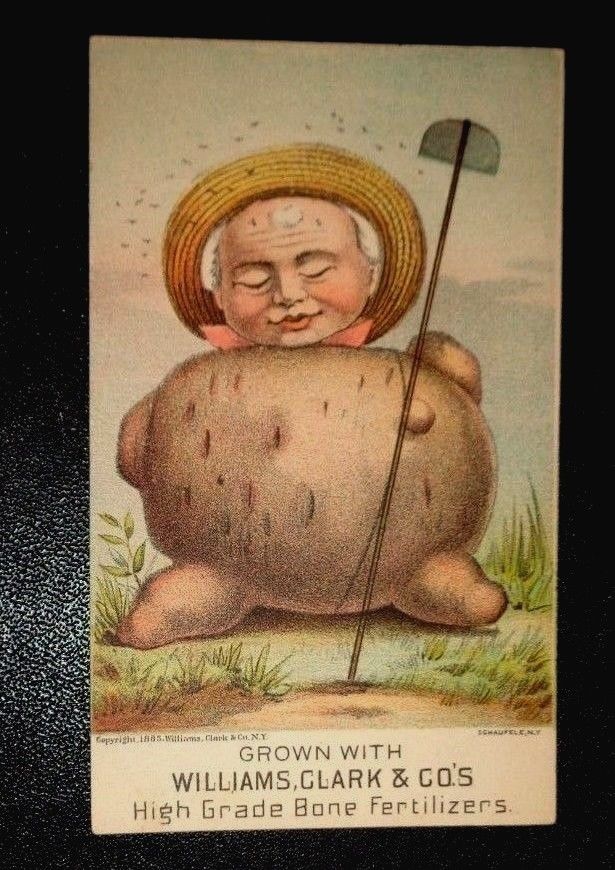 Title (ebay affiliate link): Victorian trade card advertising William Clark Fertilizer vegetable people