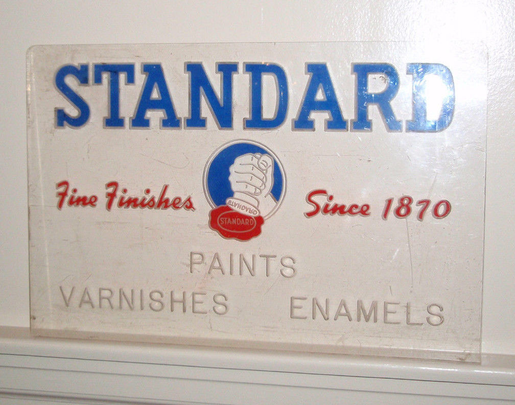 old etched and painted sign STANDARD PAINTS VARNISHES & ENAMELS New York Chicago