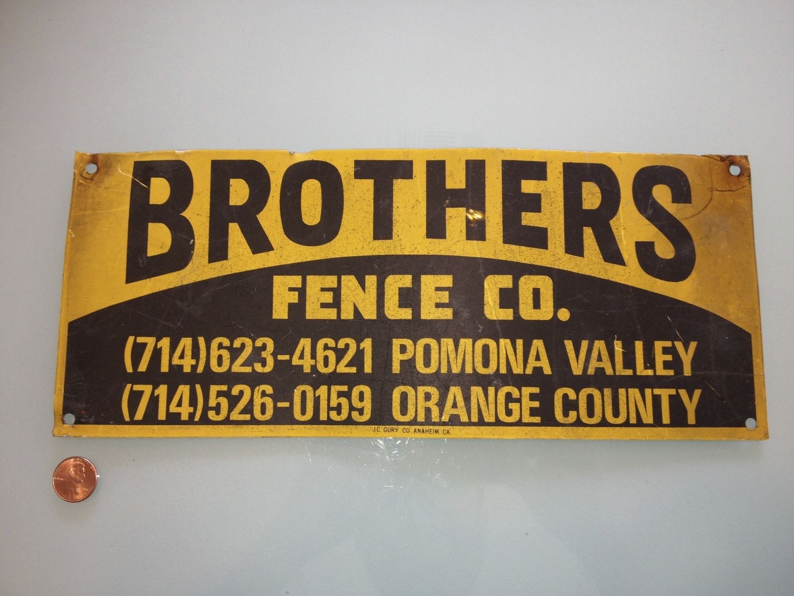 Title (ebay affiliate link): 1990''s ? Vintage BROTHERS FENCE company METAL SIGN Rare USED Orange County, CA