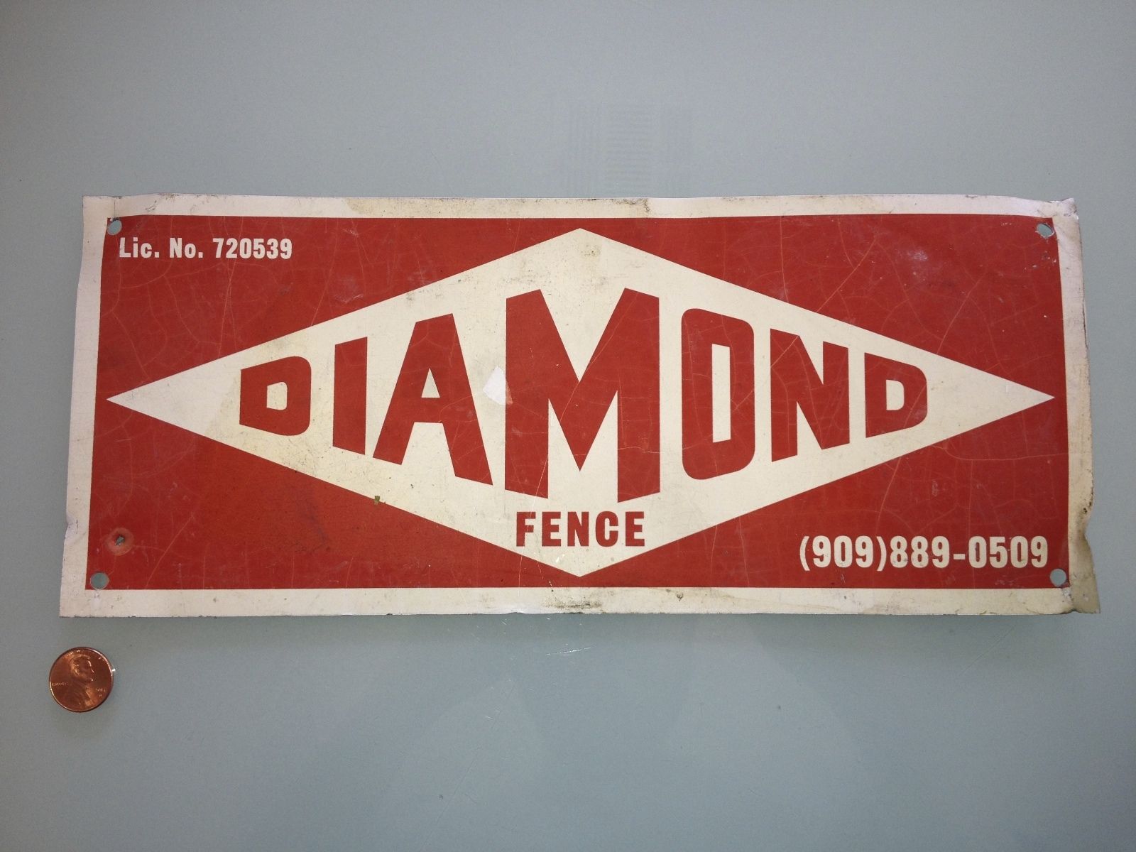 1990''s ? Vintage DIAMOND FENCE company METAL SIGN Rare USED San Bernardino, CA