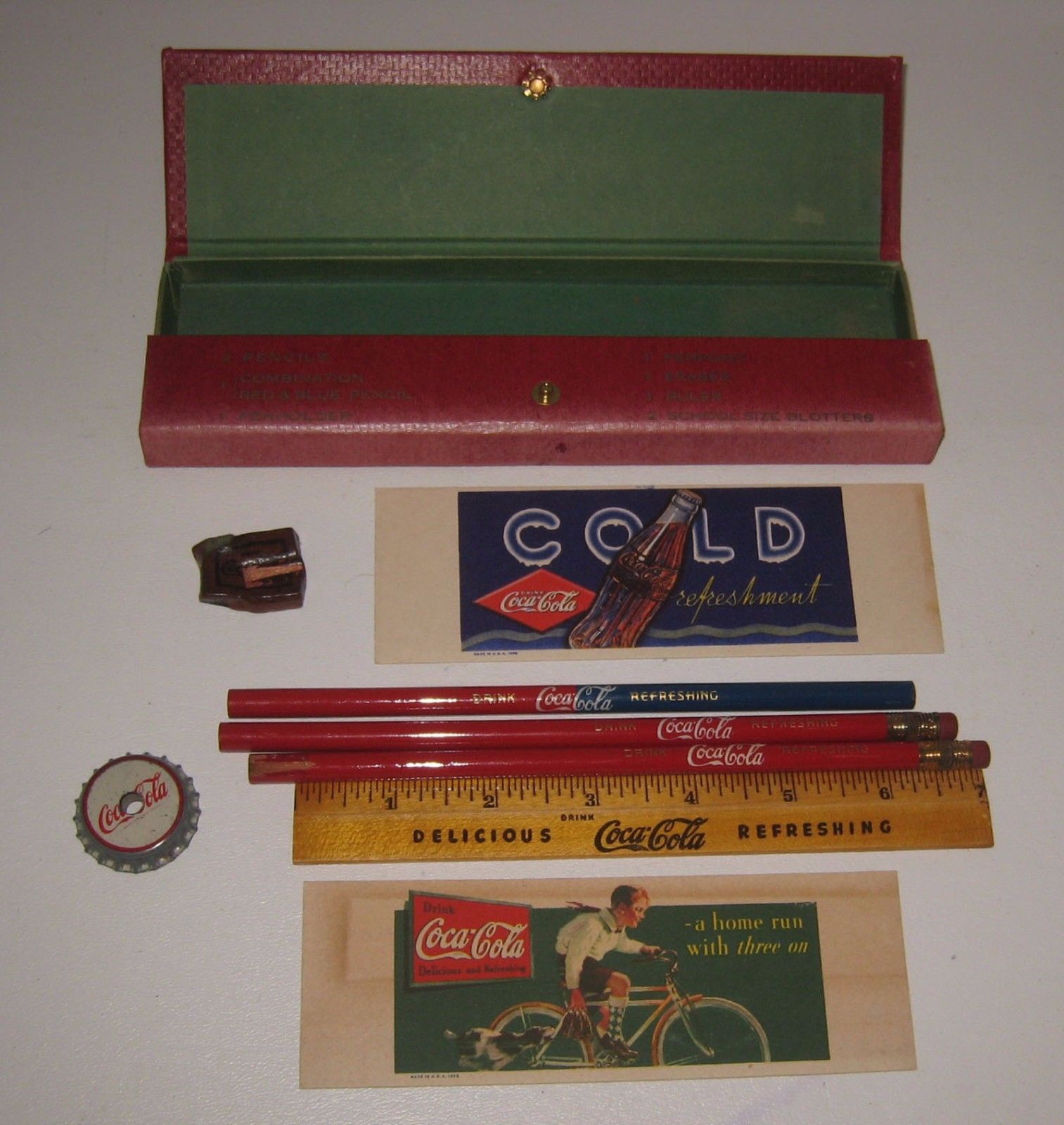 Title (ebay affiliate link): 1950s Vintage Drink Coca Cola Pencil Case & Contents Delicious & Refreshing BD59