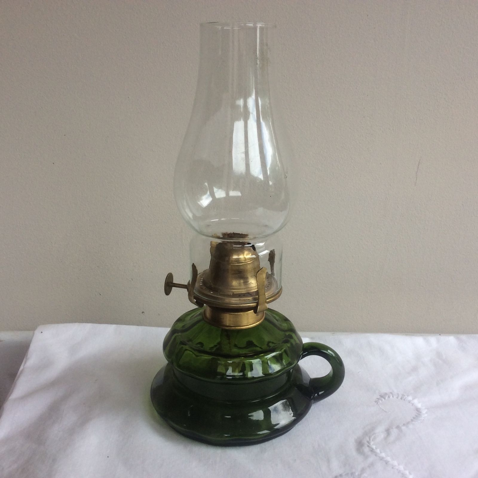 Title (ebay affiliate link): Victorian olive green finger bedroom oil lamp and chimney