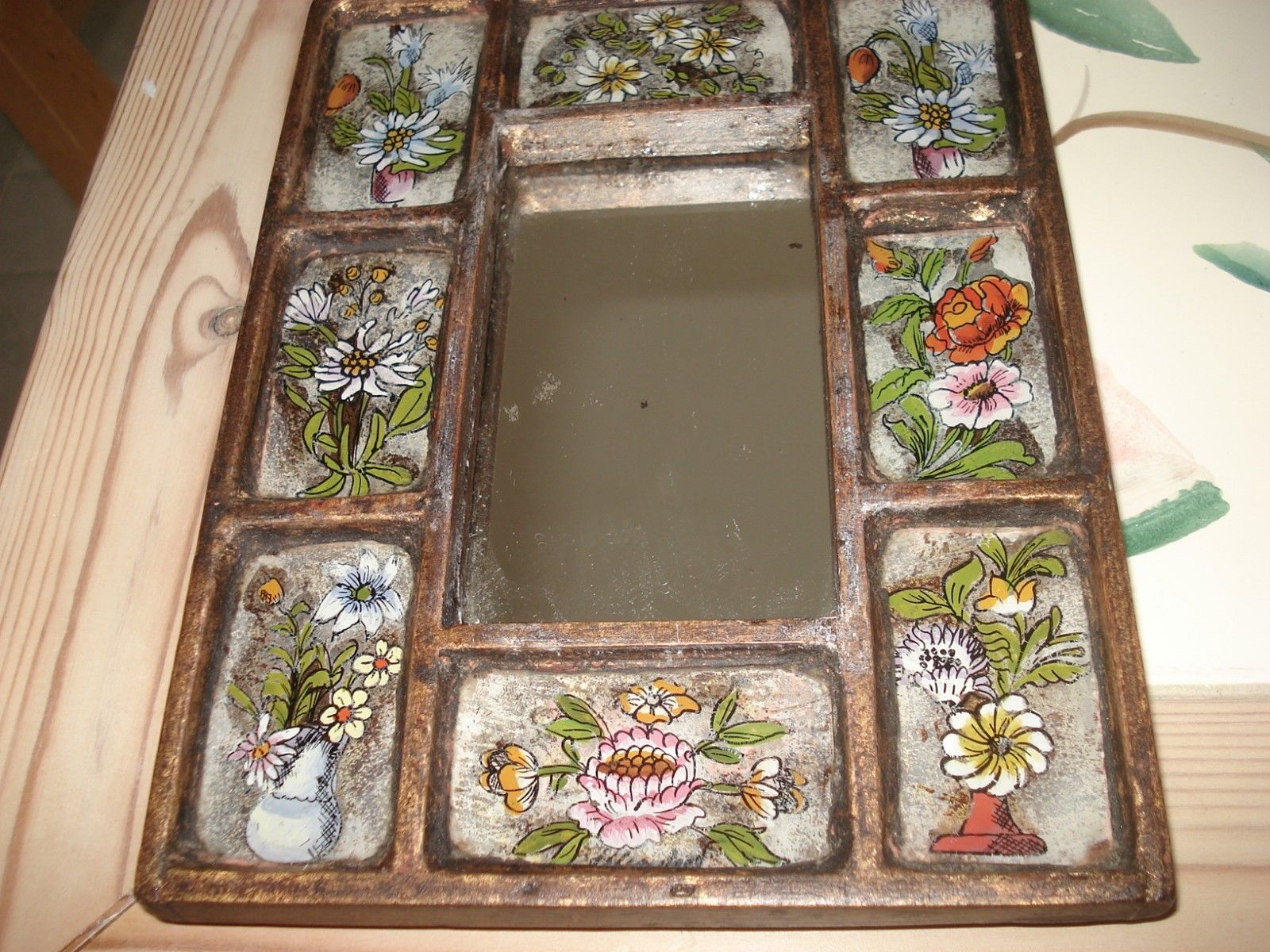 Title (ebay affiliate link): ANTIQUE BEAUTIFULLY DECORATED PANELLED MIRROR Made of Wood and Glass