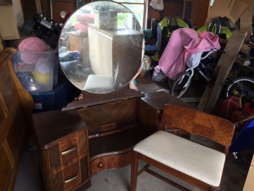 Title (ebay affiliate link): Antique Vanity Dressing Table Wood With Round Mirror And Chair