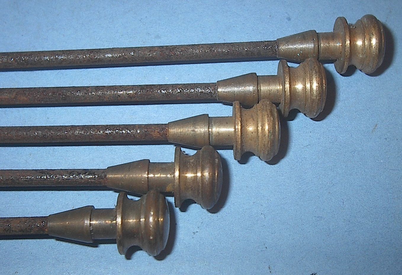 VINTAGE LIBRARY CABINET CARD CATALOG DRAWER RODS BRASS KNOB 16 3/4" LOT of 5
