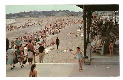 MA - REVERE BEACH MASSACHUSETTS Postcard SHADY SPOT LOTS OF PEOPLE