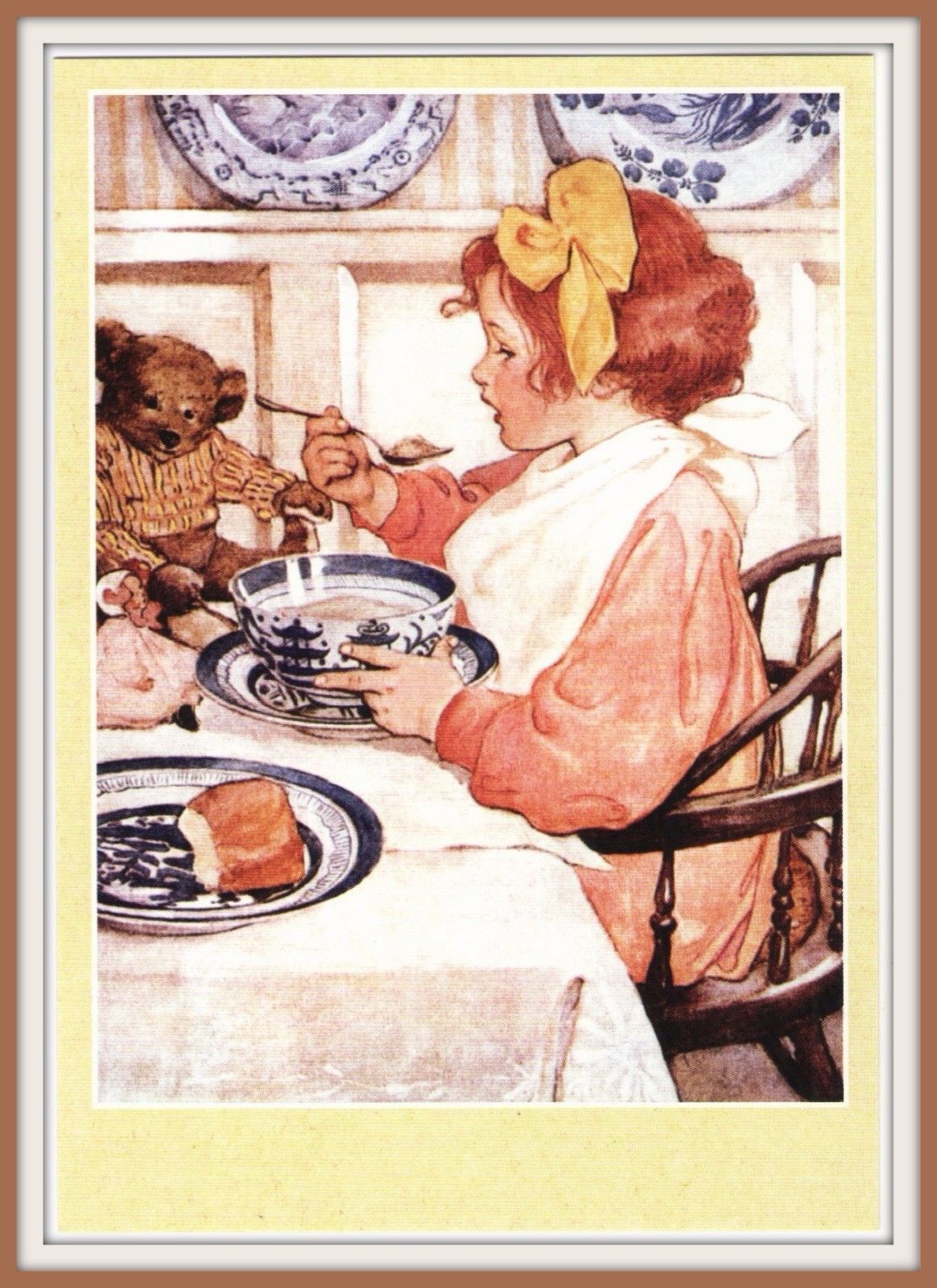 Title (ebay affiliate link): KIDS IN ART Breakfast with friends GIRL Teddy Bear DOLL Russian V Rare Postcard