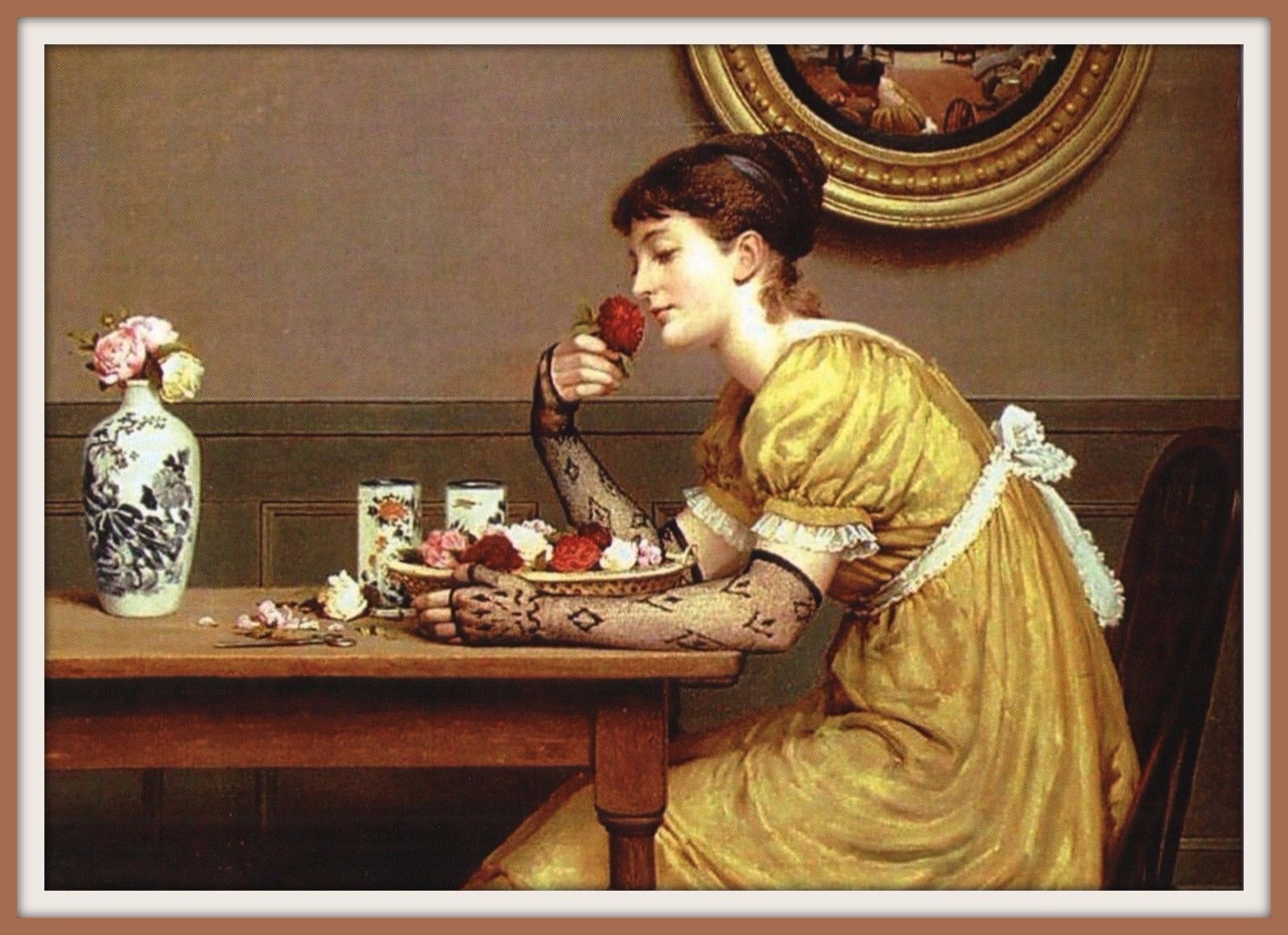 Title (ebay affiliate link): BEAUTY GIRL Flowers ROSES George Dunlop Leslie ART Postcard modern