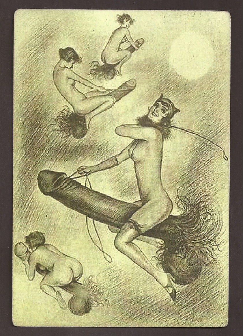 Title (ebay affiliate link): Four Witches Flying, Moon in Background, Rare Postcard, Carte Postale