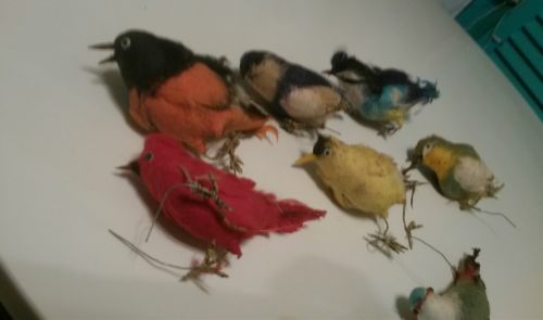 Vintage Antique Spun Cotton Birds - Decorative Christmas Ornaments 7 Pc Lot