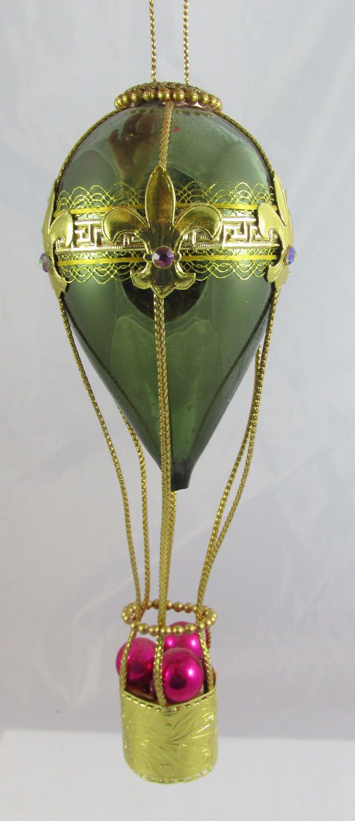 Title (ebay affiliate link): Vintage Glass Christmas Ornament Hot Air Balloon Gold Dresden Paper Fleur de Lis