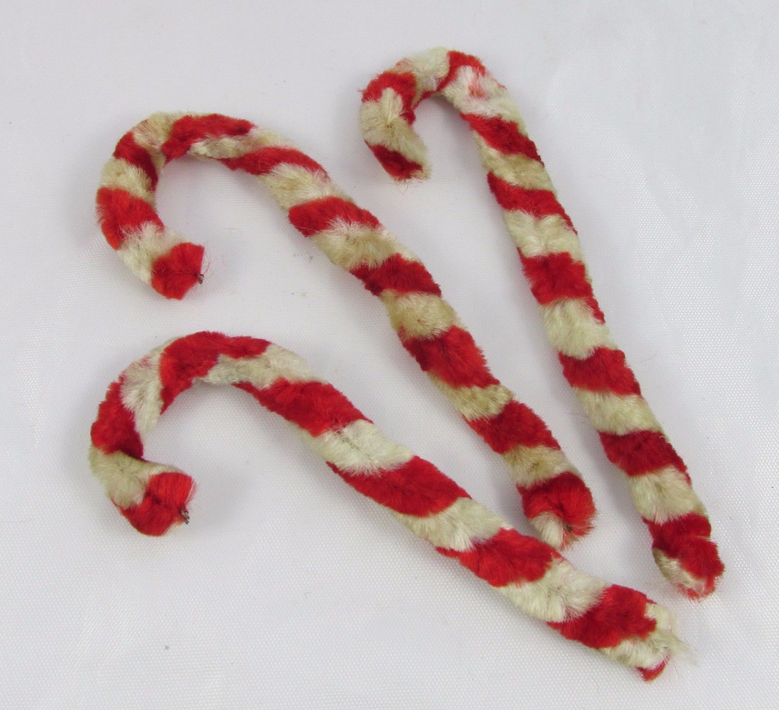 Antique Chenille Red & White Striped Figural Candy Cane Christmas Decorations 3