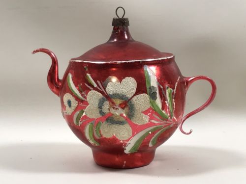 Title (ebay affiliate link): Old Germany Red Teapot w Flowers Glass Christmas Ornament App 3 1/4"H