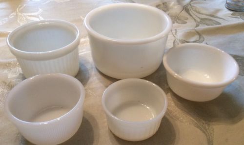 LOT OF 5 VINTAGE MILK GLASS BOWLS & RAMIKENS ECU