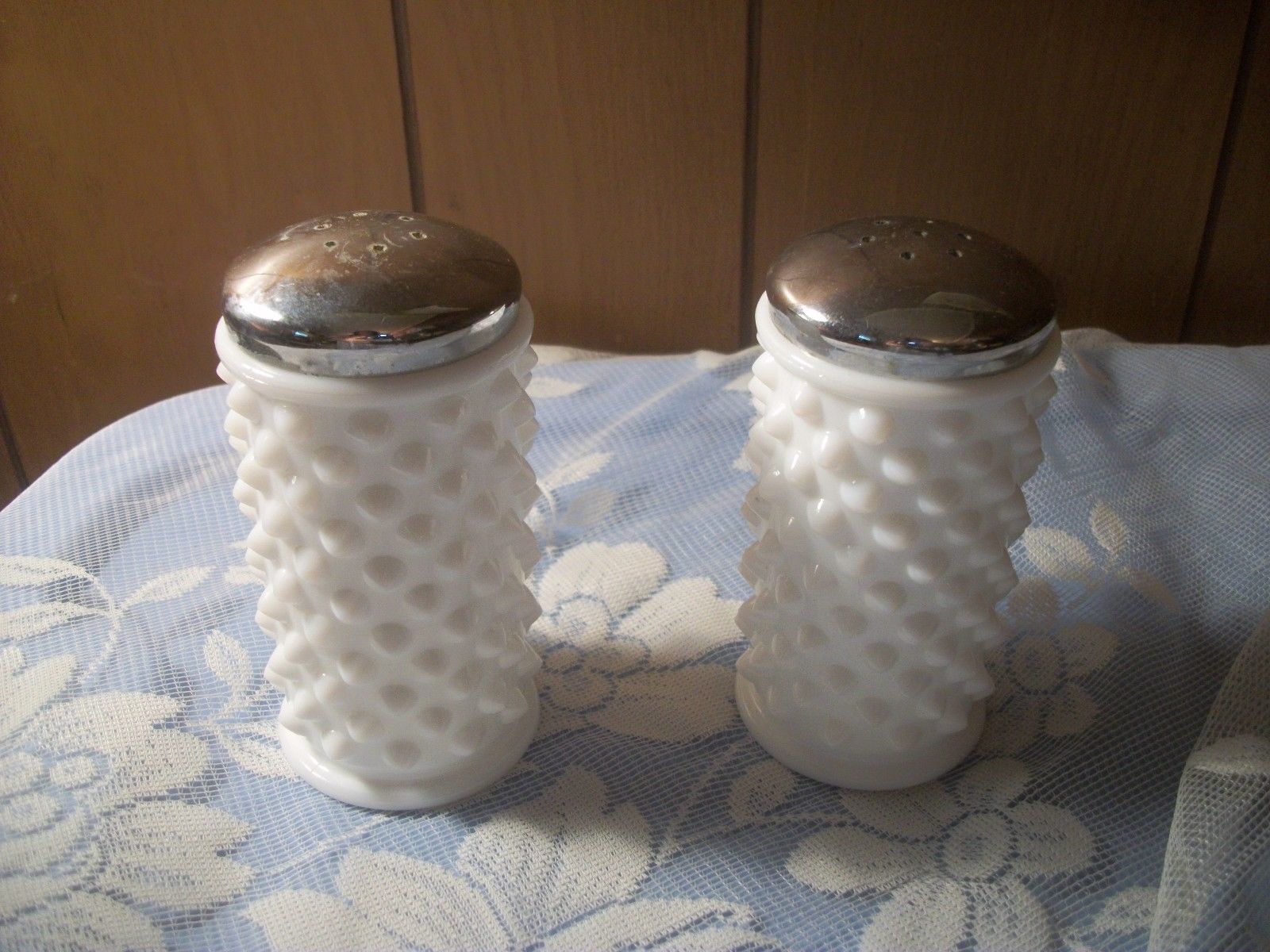 Vintage Hobnail White Milk Glass Salt and Pepper Shakers
