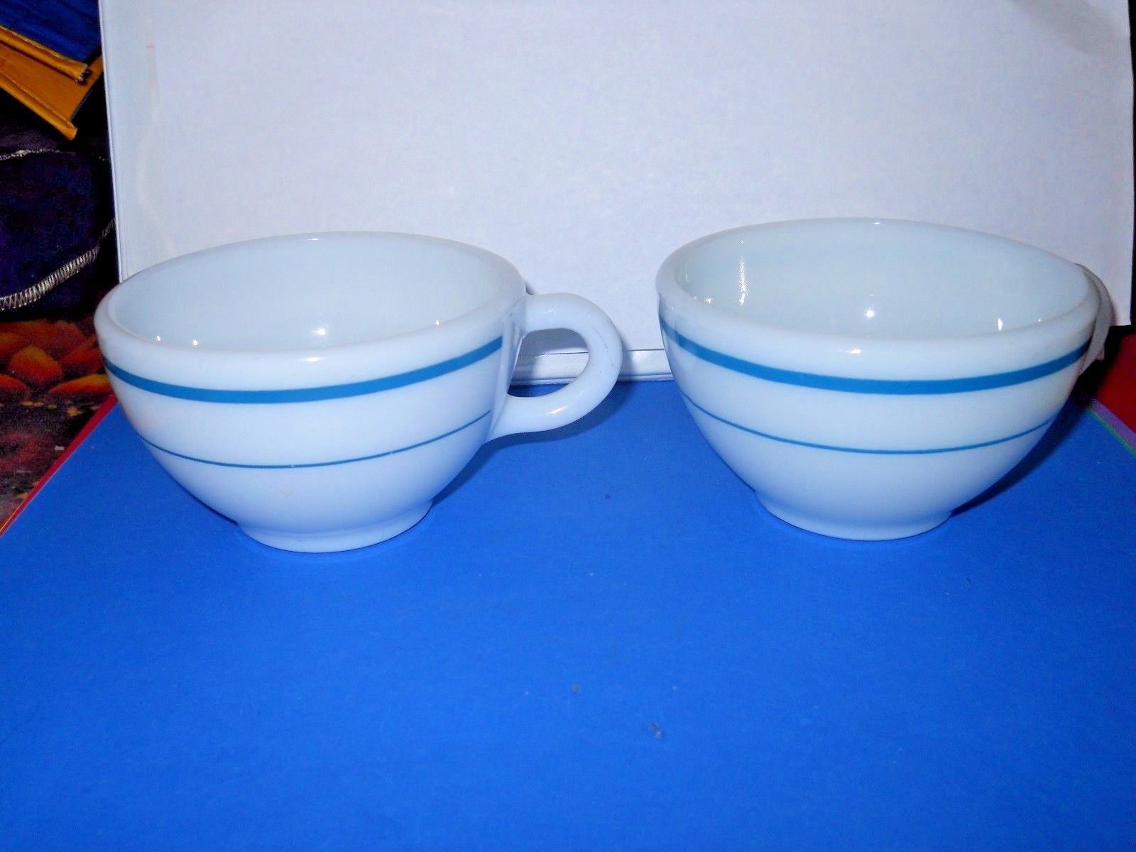 VINTAGE PYREX CORNING TABLEWARE BLUE STRIPE MILK GLASS COFFEE MUG CUPS 701- 25