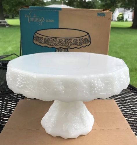 Title (ebay affiliate link): Vintage Anchor Hocking Milk Glass White Footed Cake Plate 11" Grape Pedestal Box