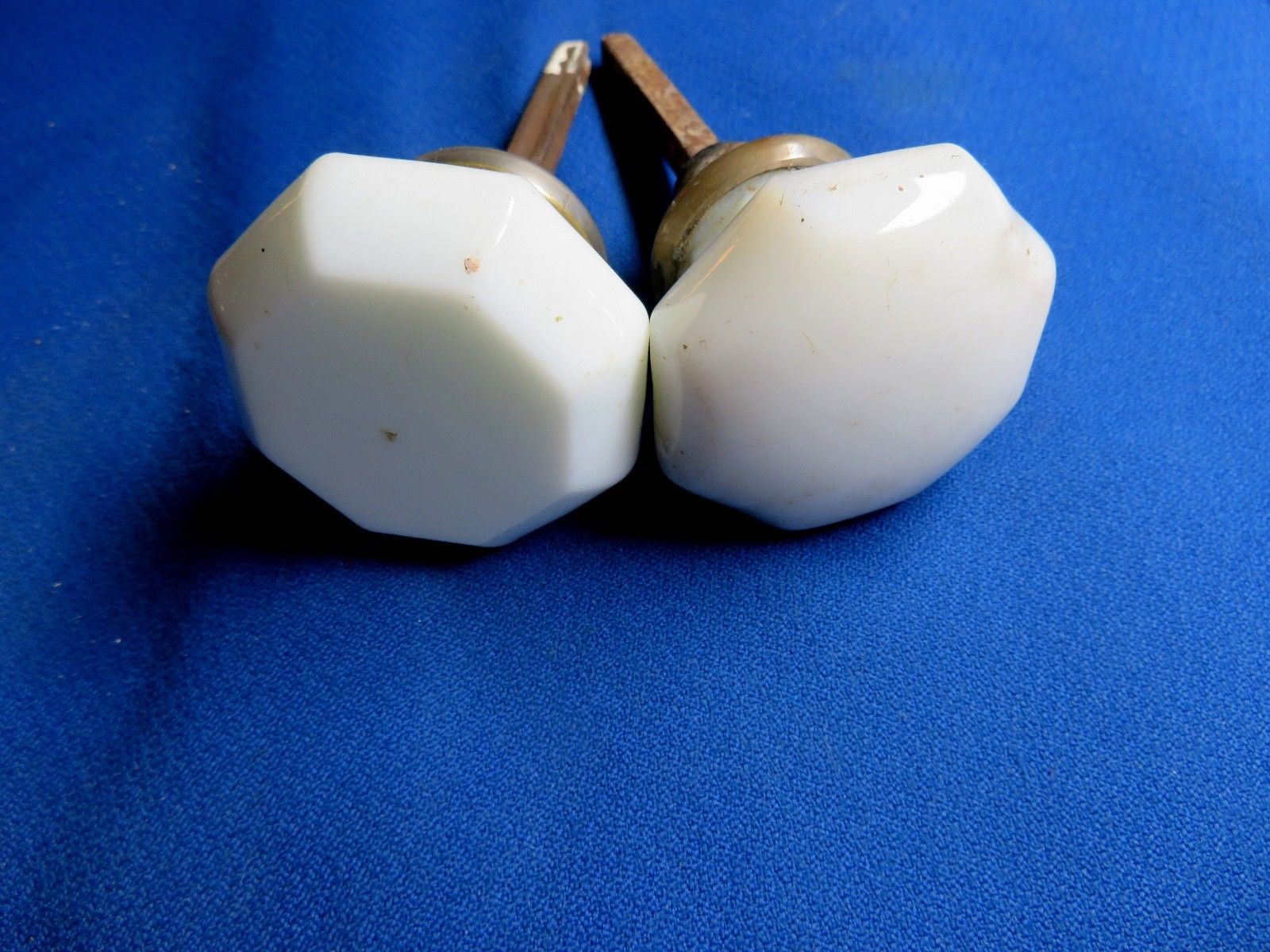 Title (ebay affiliate link): Antique Vintage Milk Glass Door Knobs Octagon Shape Non Matching SEE