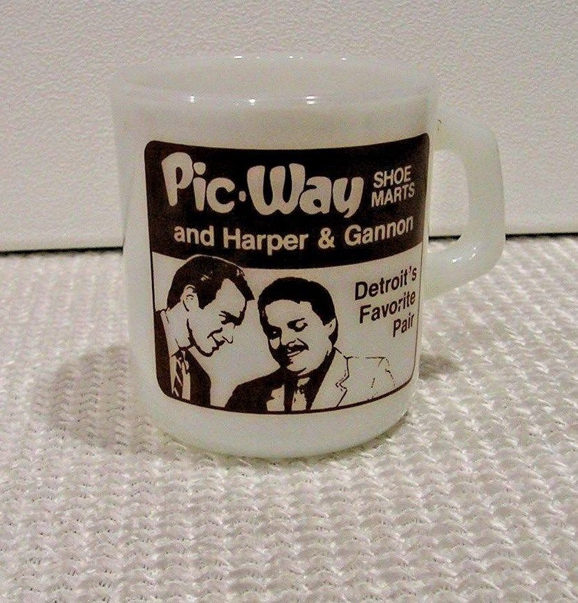 Title (ebay affiliate link): Vintage Galaxy Milk Glass Cup/Mug Pic-Way Shoe Marts Detroit