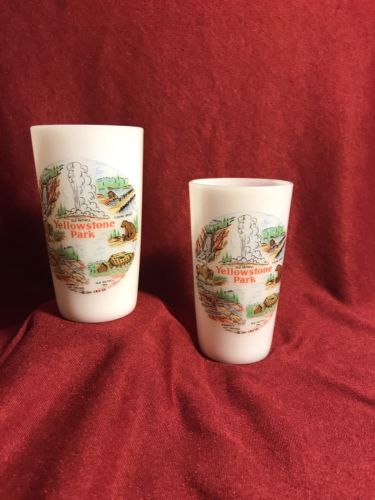 Title (ebay affiliate link): Two Vintage 8oz Federal Milk Glass Cup Yellowstone Park Souvenir 1961