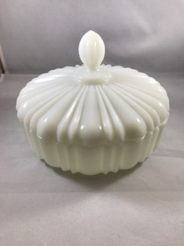 Vintage Milk Glass Lidded Candy - Dresser - Powder Dish