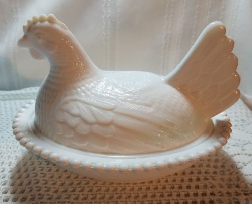 VINTAGE GLASS NESTING HEN/CHICKEN~~WHITE MILKGLASS~~EUC