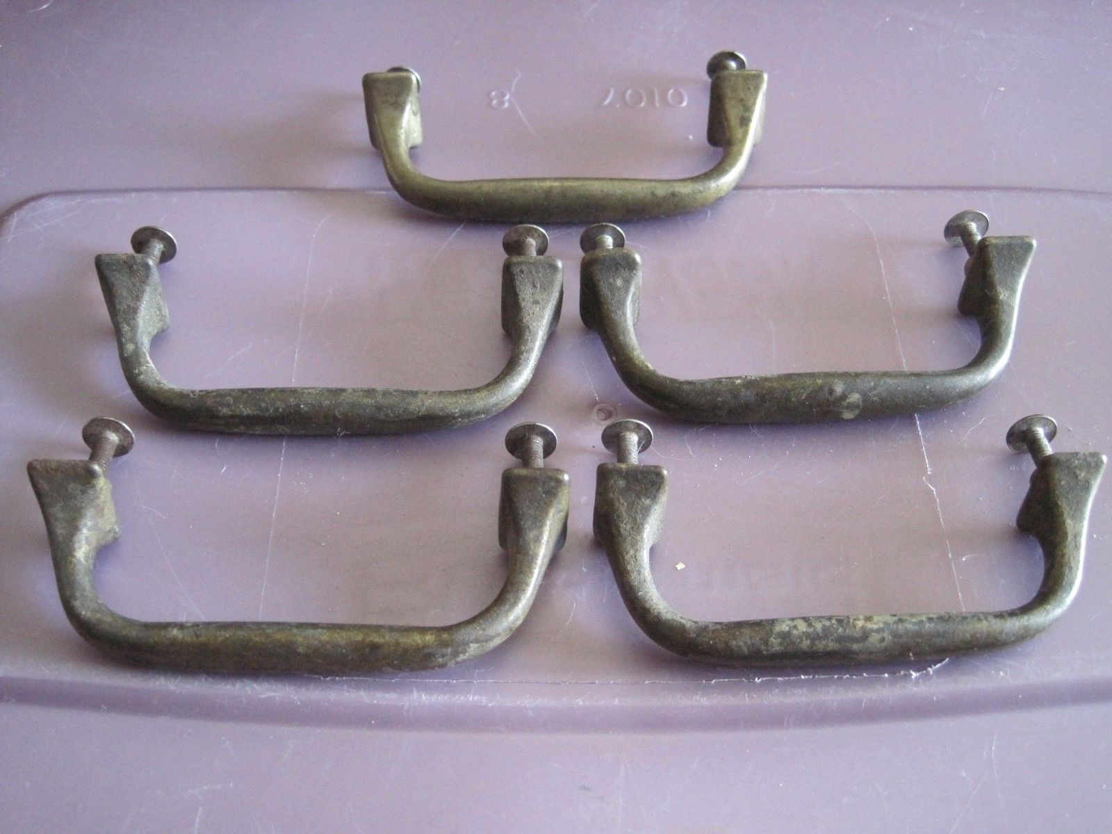 5 VINTAGE ANTIQUE MISSION ARTS CRAFTS METAL DRAWER PULL FURNITURE DRESSER PARTS