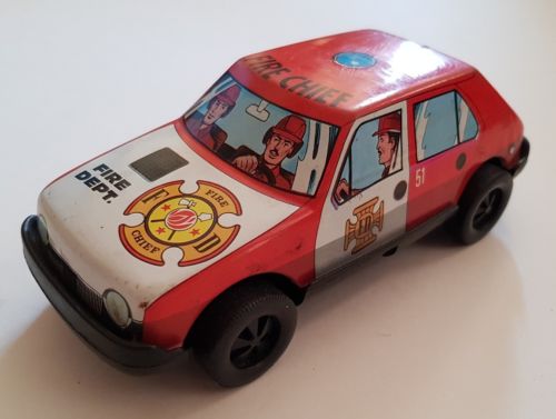 Rare vintage tinplate Juguetes Roman Spanish 70''s Fire chief dept. car tin model