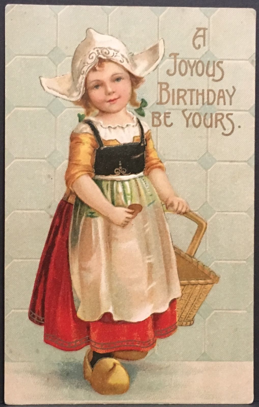 Clapsaddle Happy Birthday Postcard ~ Little Dutch Girl Holding Basket