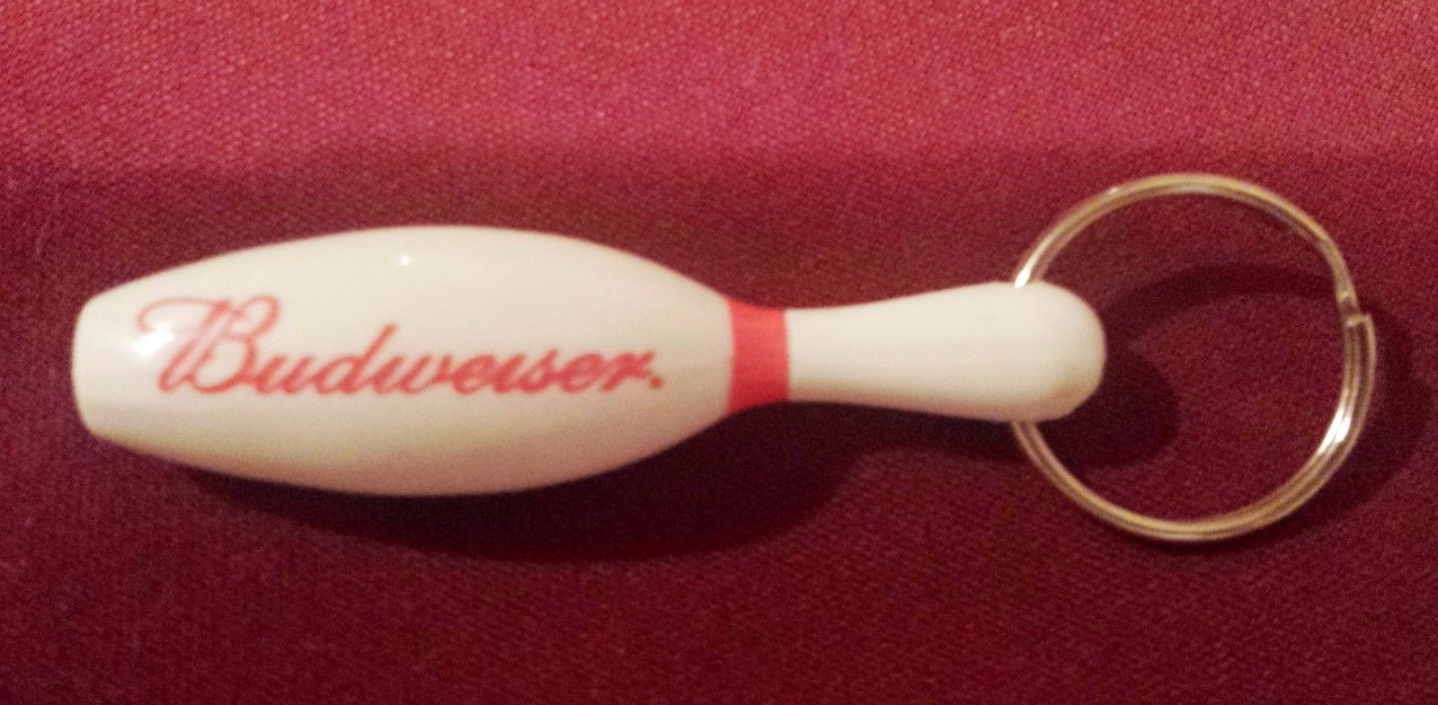 Title (ebay affiliate link): BUDWEISER Bowling Pin Key Chain & Bottle Opener Vintage / New condition