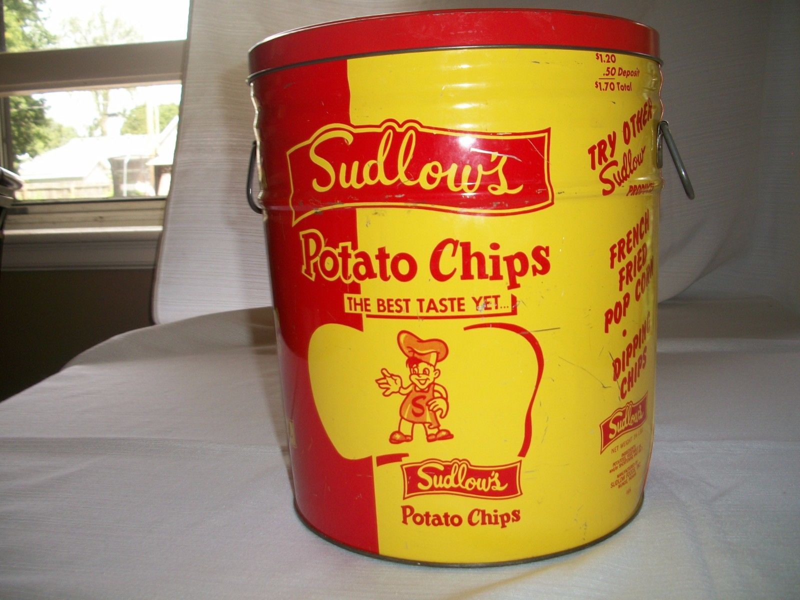VERY OLD SUDLOW''S POTATO CHIPS CAN:THE BEST TASTE YET!