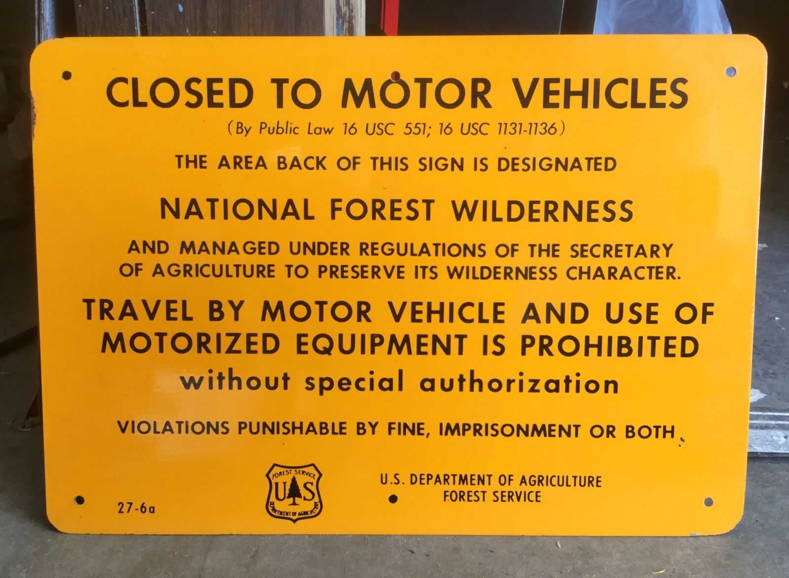 Title (ebay affiliate link): Vintage 1950s CLOSED TO MOTOR VEHICLES NATIONAL Metal Sign US Forest Service