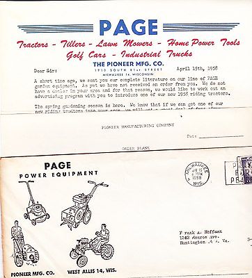 Lot of Vintage Page Garden Equipment advertising letter 1958 Pioneer Mfg.