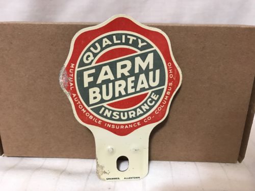 Title (ebay affiliate link): Vintage Farm Bureau Quality Insurance Metal License Plate Topper