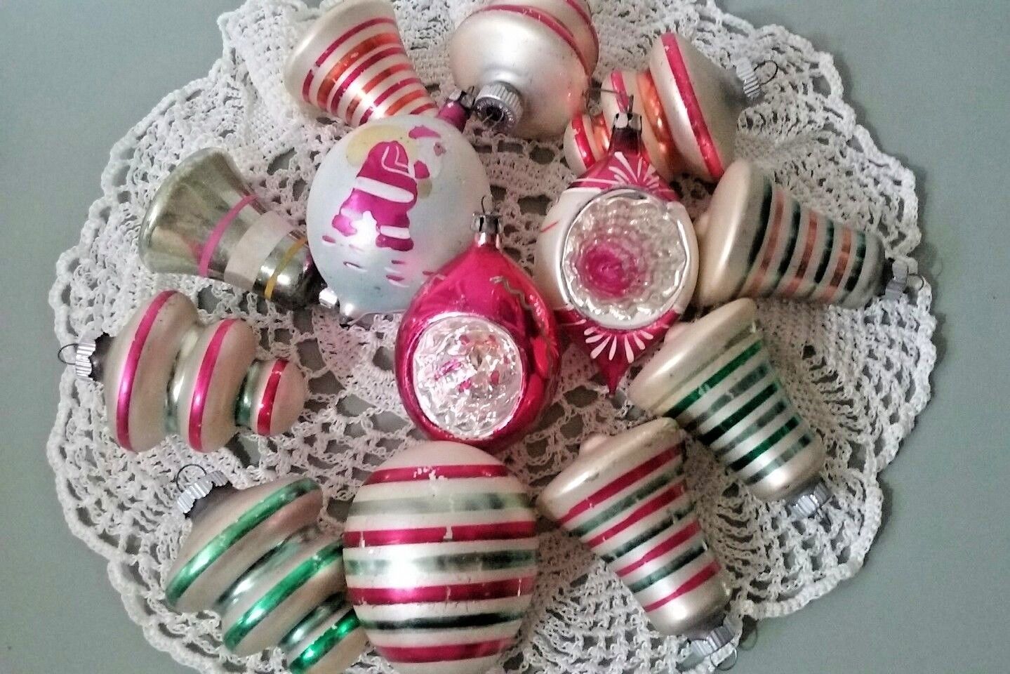 Title (ebay affiliate link): VINTAGE SHINY BRITE STRIPED CHRISTMAS ORNAMENTS LOT