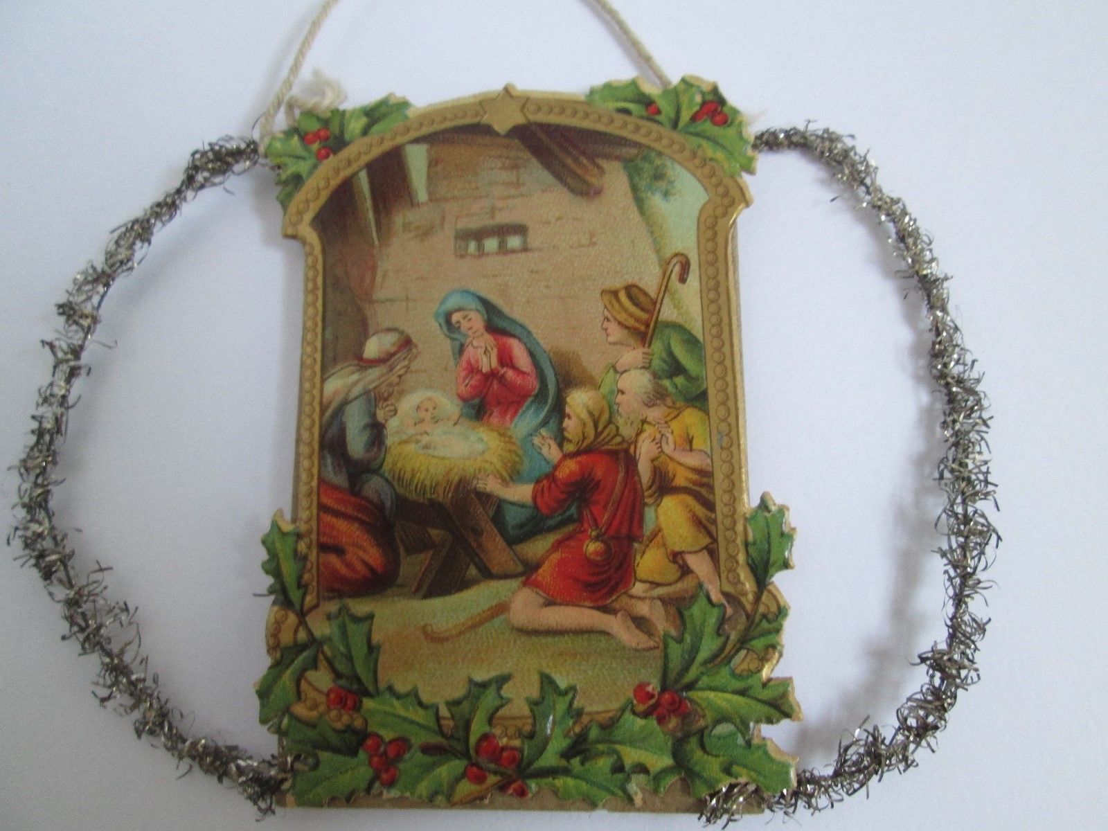 Title (ebay affiliate link): Antique Die Cut Tinsel Christmas Ornament Decoration, Nativity Scene