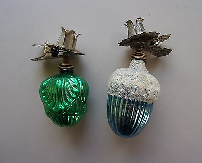 2 Antique CHRISTMAS CLIP ON CANDLE HOLDERS with BLOWN GLASS ORNAMENTS