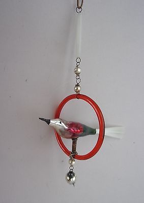 ANTIQUE BLOWN GLASS BIRD IN A GLASS RING CHRISTMAS ORNAMENT