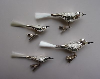 4 VINTAGE CLIP ON BLOWN GLASS Silver SONG BIRDS CHRISTMAS ORNAMENTS
