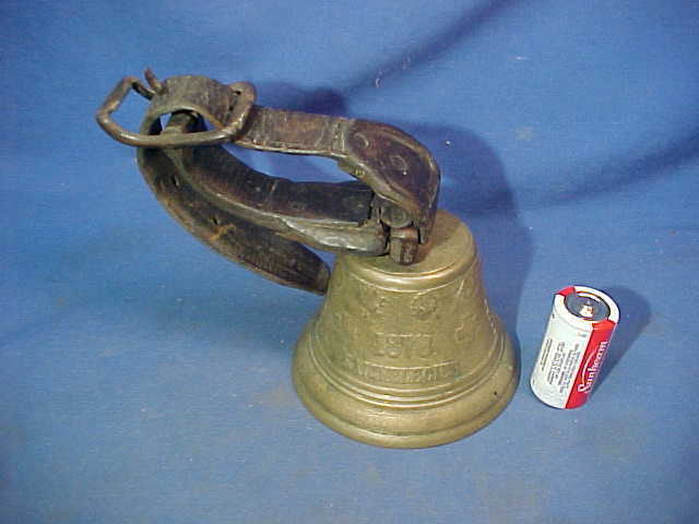 Title (ebay affiliate link): Orig 19thc LARGE BRASS COW BELL w Leather Strap MADE in SWITZERLAND