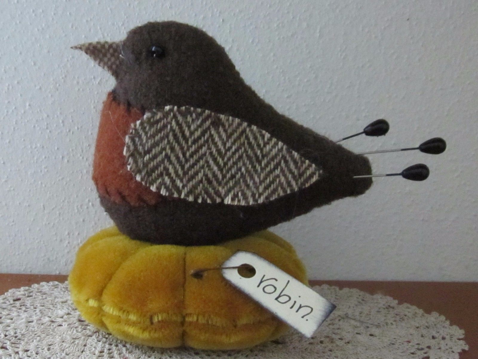 Title (ebay affiliate link): PRIMITIVE WOOL ROBIN BIRD MOHAIR MAKE DO PIN CUSHION PFATT