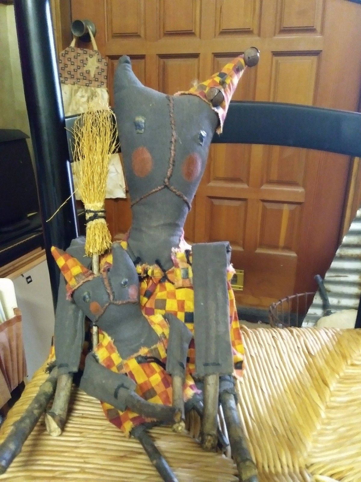 Title (ebay affiliate link): Primitive Cat-Witch Doll with baby cat-witch doll