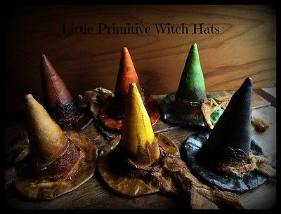 Title (ebay affiliate link): 6 LiL Primitive Witch Hats Halloween Hat Bowl Filler Ornies Grungy Multi Color
