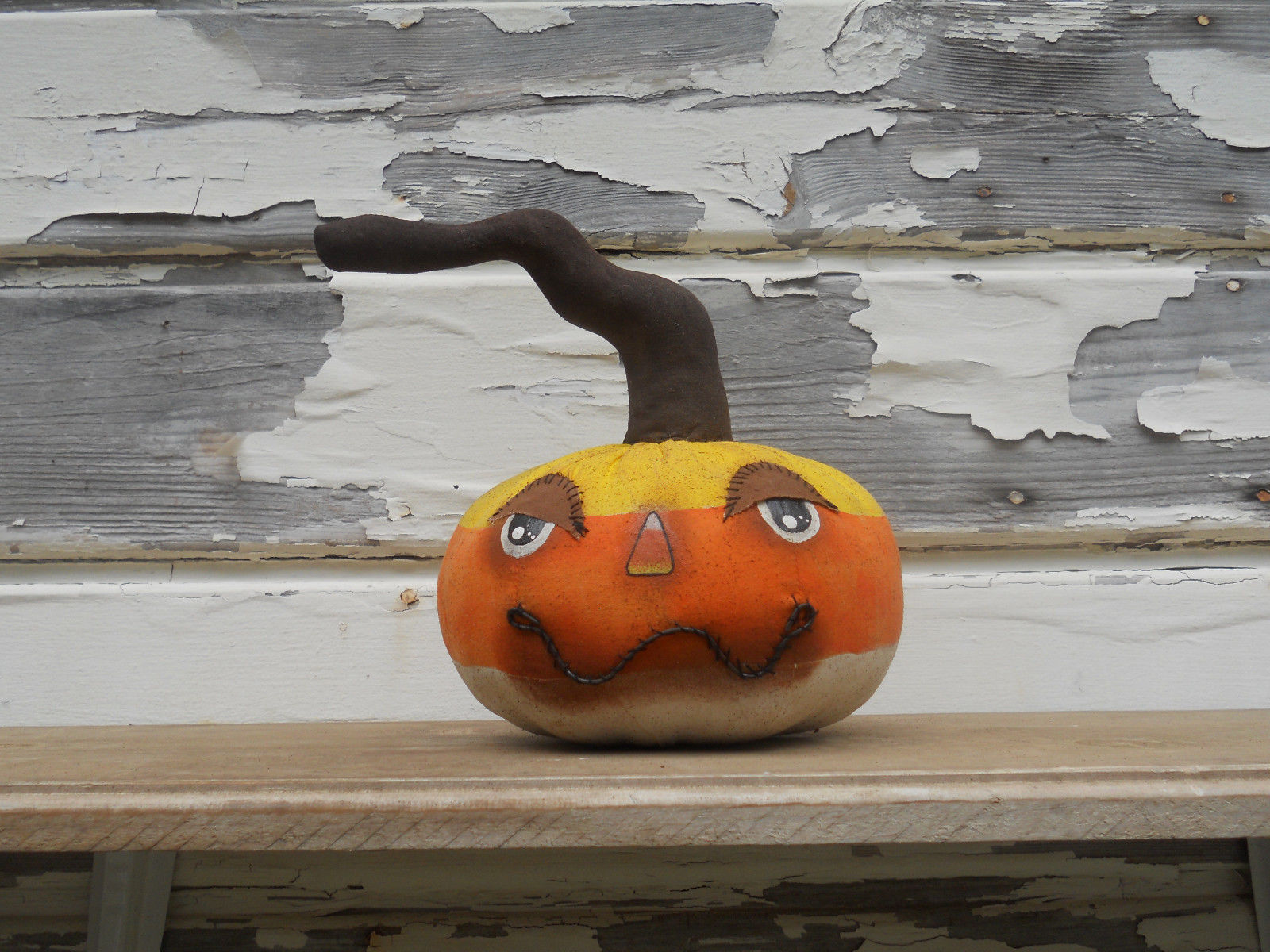 Title (ebay affiliate link): Primitive Grungy Halloween Candy Corn JOL Pumpkin Ornie Shelf Sitter Decor
