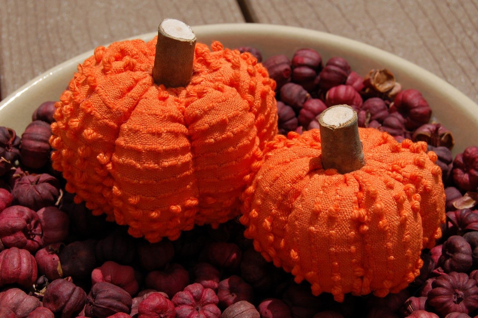Primitive Fall Halloween Hand Dyed Orange Chenille Pumpkin Ornies
