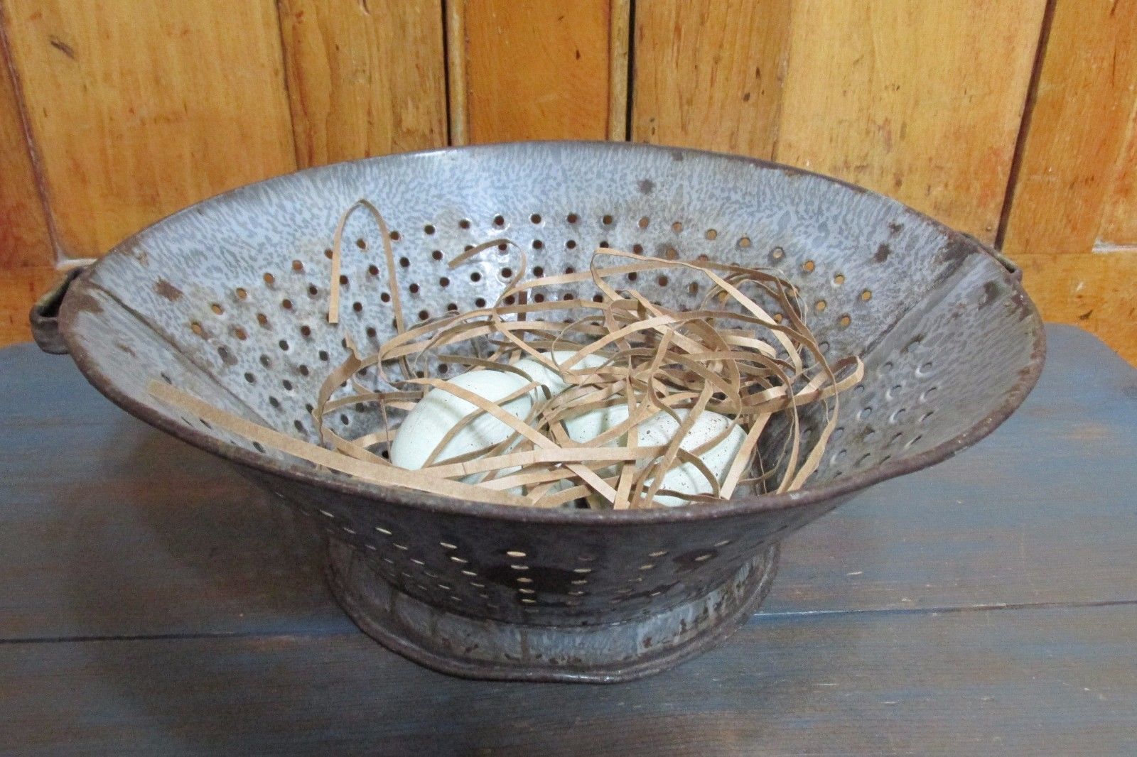 Title (ebay affiliate link): Antique Vintage Granite Colander, Eggs, Country, Farm House, Primitive