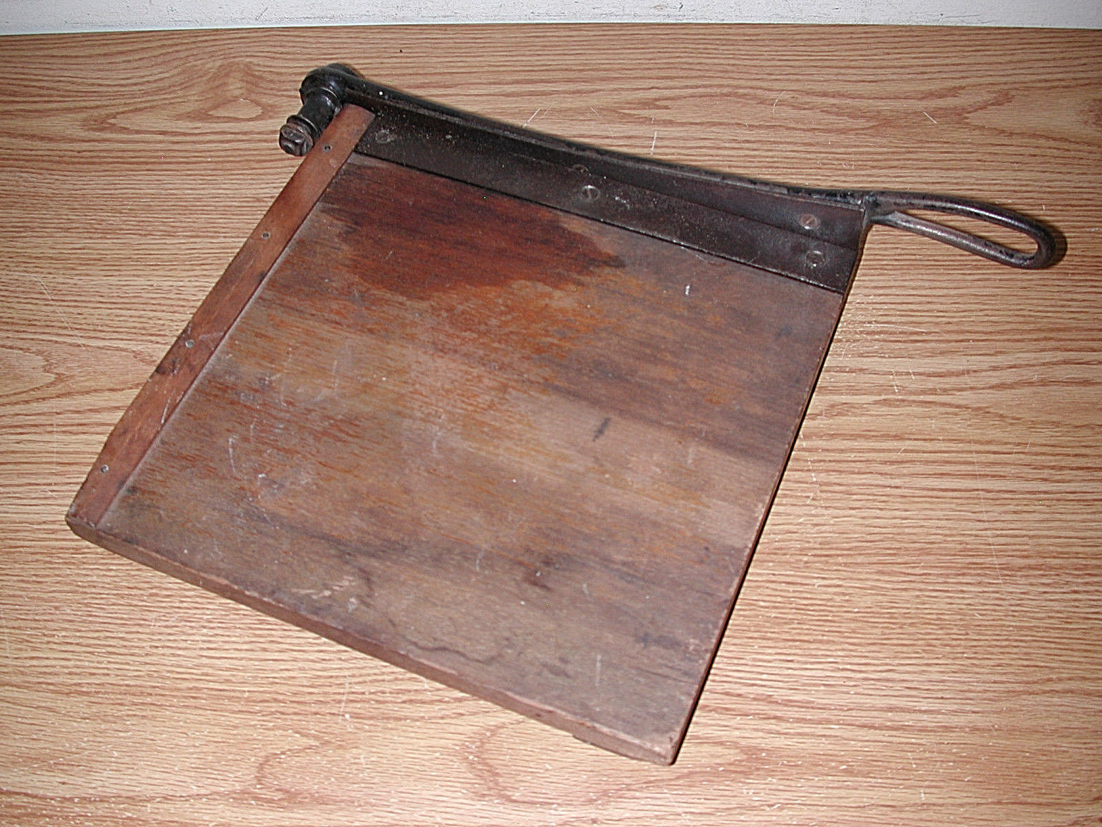 Title (ebay affiliate link): ANTIQUE VINTAGE WOODEN AND METAL PAPER CUTTER